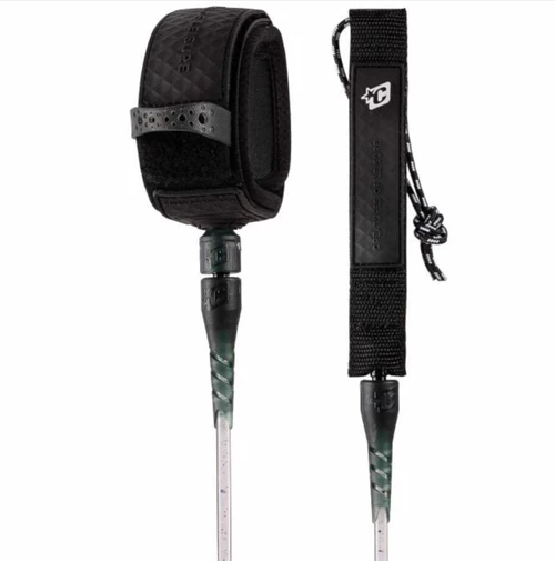 The Reliance Pro surfboard leash from Creatures Of Leisure is designed for medium-sized waves and all-around conditions. It features a patented DNA Flex Mould connection, surefire leash release, and dual stainless steel bearing swivel. A non-slip cuff completes the package. Leash Length: 6′-8′ Cord Thickness: 9/32″ Cuff Width: 1 3/4″ Railsaver Width: 1″.